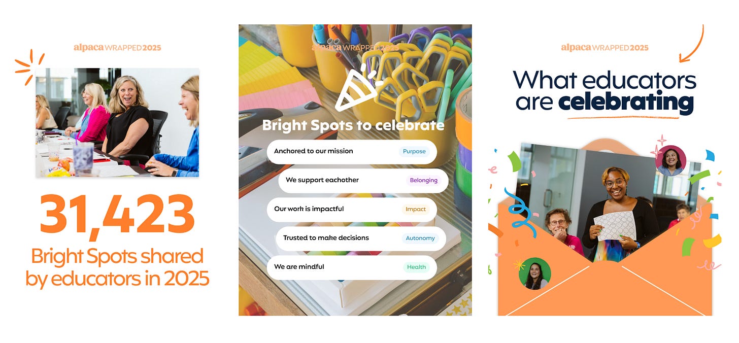 This year at Alpaca, listening showed up in new software, in new ideas for teacher recognition, in thousands of handwritten notes, in stories shared, and in the stories big and small that educators trusted us enough to tell.