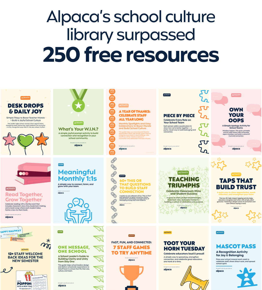 Alpaca’s care packages add a moment of celebration to the hard work of teaching, and a little bit of surprise to a school building each month. I love them, because they remind us to have a little fun, while listening to our teams.
