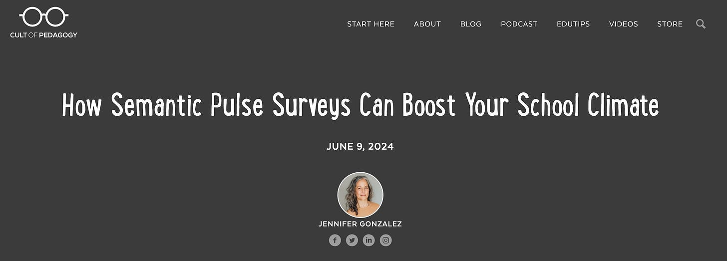 Alpaca was featured on the Cult of Pedagogy podcast to talk about semantic pulse surveys and Jennifer Gonzalez was the MOST fun to work with.
