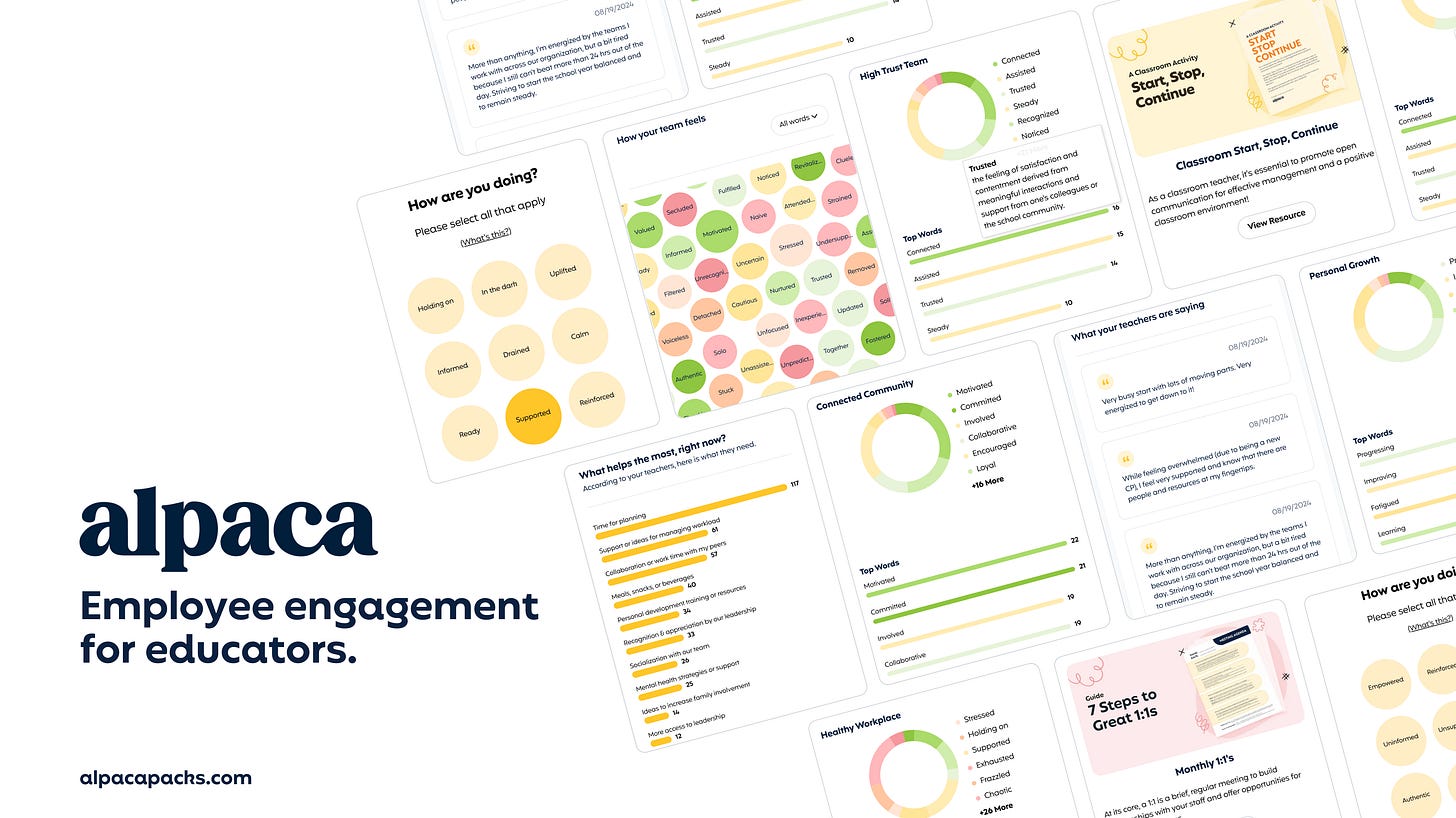 Hi, I’m Karen Borchert, founder and CEO of Alpaca, a modern employee engagement platform, built just for K12 leaders. It all starts with one question: