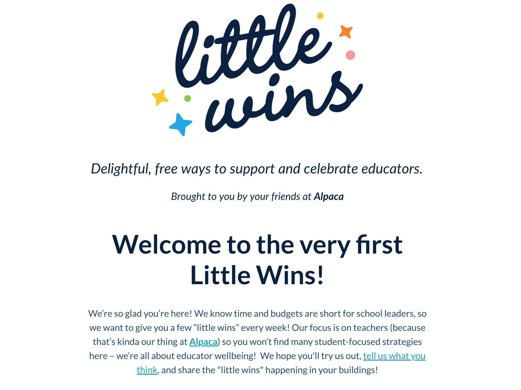 It is such a fun week — it’s the last week of the month AND the quarter (which means it’s the most fun sales week ever!), and it’s the birthday of an Alpaca effort that every single member of our team member has a hand in creating — Little Wins!