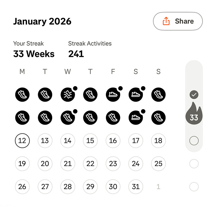 Current Running Streak: 42 Days (started in December)
